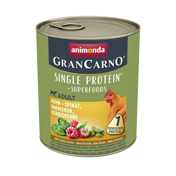 GranCarno Superfoods wird ohne Getreide, Soja, Zucker, Geschmacksverstärker, künstliche Farb- und Konservierungsstoffe in Deutschland hergestellt. Es versorgt den ausgewachsenen Hund mit allen lebenswichtigen Nährstoffen.