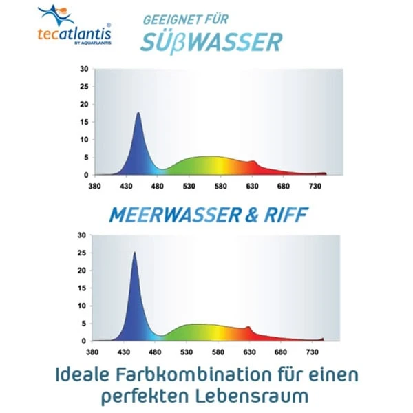 Mit einem Abstrahlwinkel von 120° und einer, im Vergleich zu herkömmlichen T5 und T8 Beleuchtungen, erhöhten Lichtleistung, fördern diese LED-Leuchten das gesunde Wachstum von Pflanzen und Fischen. Dank ihrem niedrigen Energieverbrauch und einer hohen Lebensdauer sind sie besonders umweltfreundlich und bieten zudem Sicherheit in der Handhabung durch Niederspannungsbetrieb und Wasserdichtigkeit. Die Aquatlantis EasyLed Universal Leuchte eignet sich für Süßwasseraquarien.