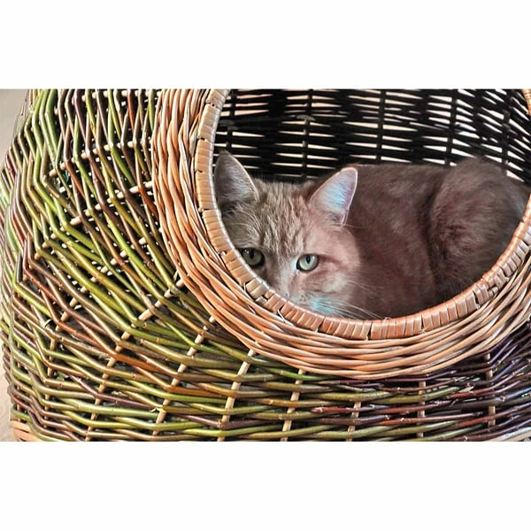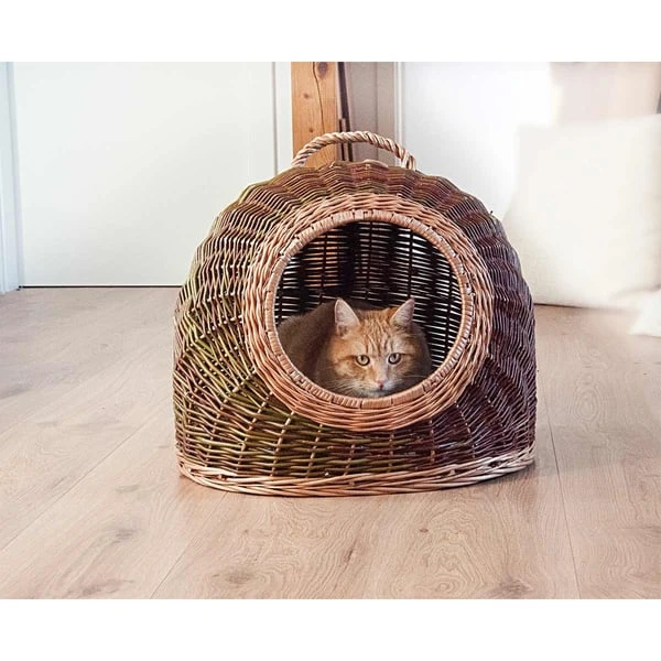 Natürliches Wohnfeeling für den Stubentiger! Die Aumüller Korbhöhlen aus Weide sind aufwendig in Handarbeit geflochten – somit ist jeder Korb ein Unikat! Dank der komplett abnehmbaren Gittertür und Riemen wird aus dem praktischen Transportkorb ein idealer Rückzugsort als Kuschelhöhle für das Zuhause. Die naturbunte Weide ist ein echter Blickfang in jedem Wohnzimmer. Ob als Reisebegleiter zum Tierarzt oder Wohnhöhle – dieser praktische Doppelnutzen macht die Aumüller Katzenhöhle zur echten Bereicherung im täglichen Katzen-Alltag.