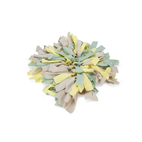 Die Beeztees Puppy Schnüffelmatte Sniffy sorgt für Abwechslung im Welpen-Alltag. In der Matte können für Welpen geeignete Hundekekse und andere Leckereien versteckt werden. Aufgrund der vielen Stoffstreifen muss der Welpe sich anstrengen, um die Snacks zu finden, und ist so lange beschäftigt. Er kann seinen Spürsinn unter Beweis stellen und wird für die erfolgreiche Suche gleich belohnt. Die Matte besteht aus kurzen und langen Stoffstreifen in verschiedenen Farben. Hergestellt aus Joggingstoff ist die Matte für das Näschen des Welpen angenehm weich. Das gemeinsame Spielen mit der Schnüffelmatte stärkt zudem die Bindung zwischen Mensch und Hund. Dabei sollte immer darauf achtgegeben werden, dass der Welpe nicht in die Matte beißt oder darauf herumkaut.