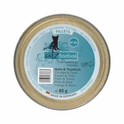 Katzen sind reine Karnivoren, also Fleischfresser und benötigen vor allem tierische Proteine. Und was ist das Beste am Fleisch? Genau, das Filetstück! Deshalb lieben die Vierbeiner edles Filetfleisch. Besonders, wenn du einen sehr futtermäkeligen Gourmet zuhause hast, eignet sich unser catz finefood Fillets zur dauerhaften, täglichen Fütterung. Die aromatischen, saftigen Komplettmenüs versorgen deinen Feinschmecker täglich mit allen Nährstoffen, die er braucht. Enthalten sind beste Hühnchen- und Putenfilets mit All-Meat-Textur und Innereien, ergänzt mit Mineralstoffen und wertvollem Öl. Um die Verdauung deiner Katze zu unterstützen, enthält das Nassfutter Chiasamen, welche reich an essentiellen Fettsäuren sind.