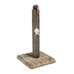 Der Designed by Lotte Kratzpfosten Kubu ist ein stylischer Kratzbaum, der sich sehr geschickt in jede Einrichtung einfügt. Die Säule ist mit Schiffstau-Material aus Sisal umwickelt, um für die nötige Kratzgelegenheit zu sorgen. Ein Lederstreifen mit einem Spielzeugfisch ist am oberen Ende befestigt. Der Fisch wird zu einem lustigen Spielgefährten deiner Katze und sorgt für noch mehr Spielspaß. Der Standfuß aus Rattan komplettiert die rustikale Optik.