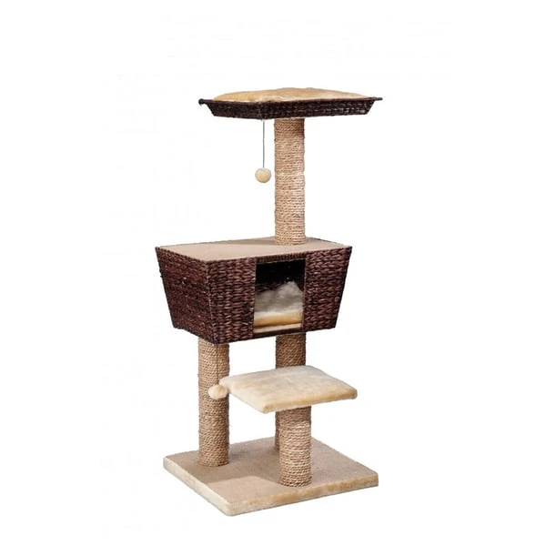Mit dem Plüsch ist der Kratzbaum auch besonders kuschelig. Mit dem Sisal ist der Kratzbaum bestens für die Krallen deiner Katze gewappnet. Der Kratzbaum besteht aus Echtholz – ein nachwachsender Rohstoff. Eine besonders schöne und natürliche Optik bekommt der Kratzbaum mit der verwendeten Wasserhyazinthe. Hier kann nicht nur gespielt und gekratzt, sondern auch ein Nickerchen gemacht werden. Nicht nur ein toller Ort um die Krallen auf Vordermann zu bringen, sondern auch zum Klettern und Spielen. Der Kratzbaum ist mit einer Höhle zum Rückzug, mehreren Etagen als Aussichtsposten, Extras für viel Spielspaß, einem herausnehmbaren Kissen ausgestattet. Schenke deiner Katze eine Portion Kratzspaß – mit dem Kratzbaum von Europet Bernina!