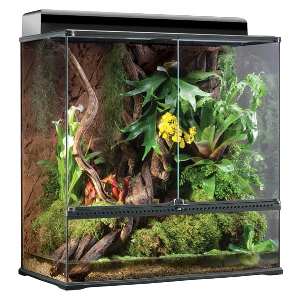 Diese Terrarienkombination 90x45x90 cm von Exo Terra wird inklusive Unterschrank und Beleuchtungsabdeckung geliefert, die natürlich optimal auf das Terrarium als Herzstück abgestimmt sind.