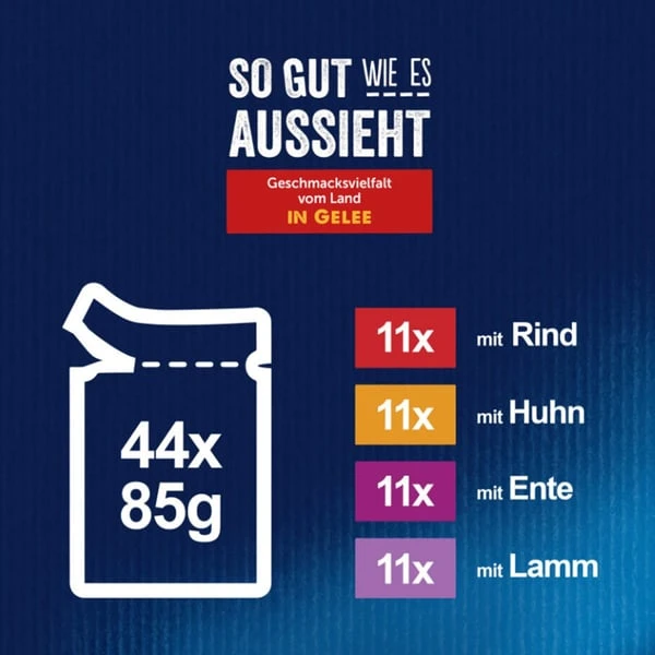 FELIX So gut wie es aussieht ist eine Auswahl unwiderstehlicher Mahlzeiten, die so lecker aussehen, riechen und schmecken, als hätte man sie selbst zubereitet. Jede Sorte, hergestellt mit hochwertigen Zutaten, besteht aus zarten Stücken in Gelee für eine leckere Mahlzeit, die Ihre Katze lieben wird!
