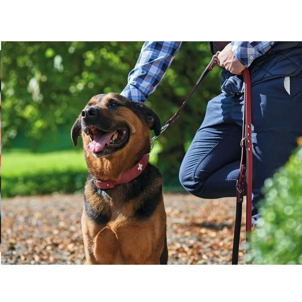 Diese verstellbare Führleine besteht aus pflanzlich gegerbtem Ökoleder, das komplett kompostierbar ist. Um die Geschmeidigkeit des Leders, die lange Haltbarkeit und den Glanz der Oberfläche zu bewahren, ist die Lederoberfläche mit einer speziellen Fettung bearbeitet. Im Verlauf der Zeit entwickelt das rote Leder eine individuelle Patina, die jede Leine zum Unikat macht.