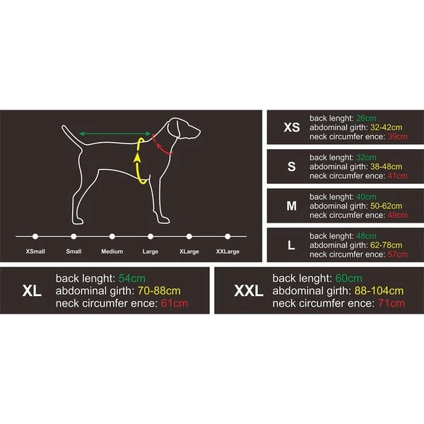 | Größe | Rückenlänge | Bauchumfang | Halsumfang |