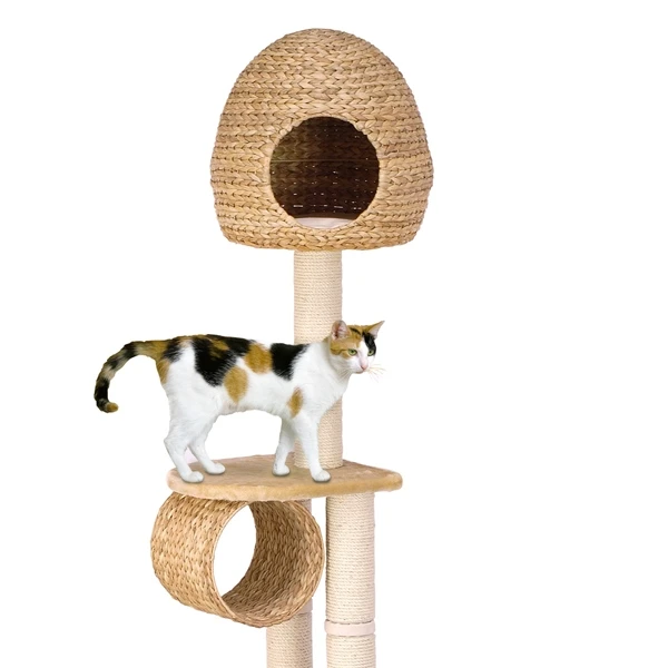 Der Plüschanteil des Kratzbaums ist samtig weich. Auch für besonders ausgiebiges Krallenschärfen ist der Kratzbaum mit dem robusten Sisal klasse geeignet. Der Kratzbaum besteht aus Echtholz – ein nachwachsender Rohstoff. Eine besonders schöne und natürliche Optik bekommt der Kratzbaum mit den verwendeten Bananenblättern. Hier kann nicht nur gespielt und gekratzt, sondern auch ein Nickerchen gemacht werden. Auch mehrere Katzen können sich dank der großen Stabilität des Kratzbaums austoben. Nicht nur ein toller Ort um die Krallen auf Vordermann zu bringen, sondern auch zum Klettern und Spielen. Besonders robust und strapazierfähig gefertigt. Mit einer Höhle für mehr Gemütlichkeit, mehreren Etagen zum Klettern, Spielelementen, einer bequemen Liegemulde zum Zusammenrollen ist der Kratzbaum wunderbar ausgestattet. Mit dem Kratzbaum von Karlie lässt du es deiner Katze gut gehen.