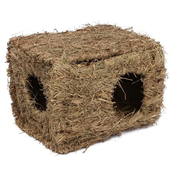 Ob als Nest, Versteck oder Spielhaus – für das Grashaus XL von Kerbl finden Nager aller Größen und Rassen vielerlei Verwendungsmöglichkeiten. Chinchillas bis Meerschweinchen, aber auch Frettchen, Kaninchen und Degus lieben es wegen seiner Naturmaterialien. Denn selbstverständlich besteht es zu 100 Prozent aus getrocknetem Gras, lässt sich daher auch gefahrlos anknabbern, und ist frei von gefährlichen Kunststoff oder Draht.