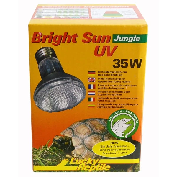 Die Lucky Reptile Bright Sun UV Jungle 35W versorgt tropische Reptilien mit viel Licht, Wärme und mit lebensichtigen UV Strahlen.
