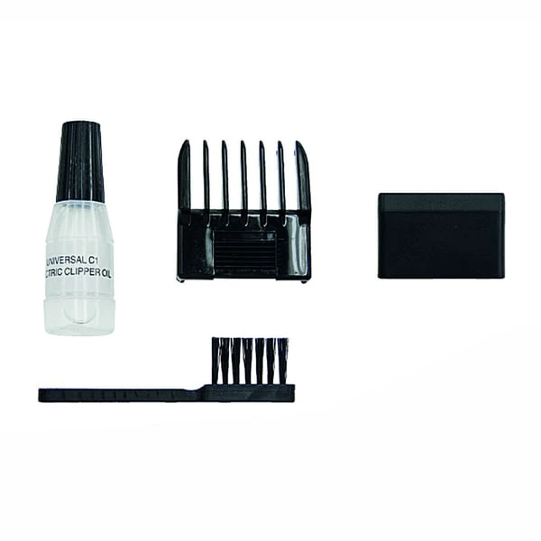 Lieferumfang: 1 Edelstahlschneidsatz, 1 Vario-Aufsteckkamm für Schnittlängen von 3-6 mm, 1 Reinigungsbürste, 1 Schneidsatz-Pflegeöl, Messerschutz