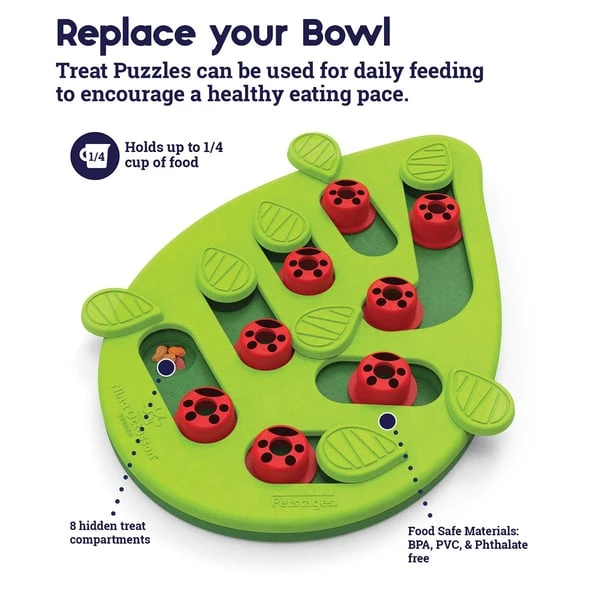 Deine schlauen Katzen werden die Herausforderung lieben, die ihnen Buggin Out Puzzle & Play von Nina Ottosson bietet. Sie können nach den Steckteilen schlagen und die Blätter drehen, um die 14 verborgenen Leckerlifächer aufzudecken. Passe den Schwierigkeitsgrad des Spiels an, damit es für Anfänger einfacher ist, während die ganz schlauen Katzen vor eine richtige Herausforderung gestellt werden können. Füttere deine Katze mithilfe des Spielzeugs, damit sie ihre Instinkte zur Jagd und Futtersuche ausleben kann. Das Spielzeug bietet ein Fassungsvermögen für bis zu ca. 60 g Futter.