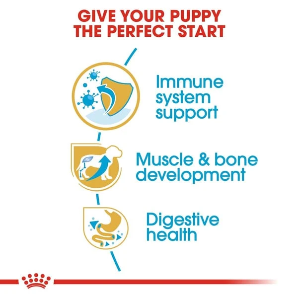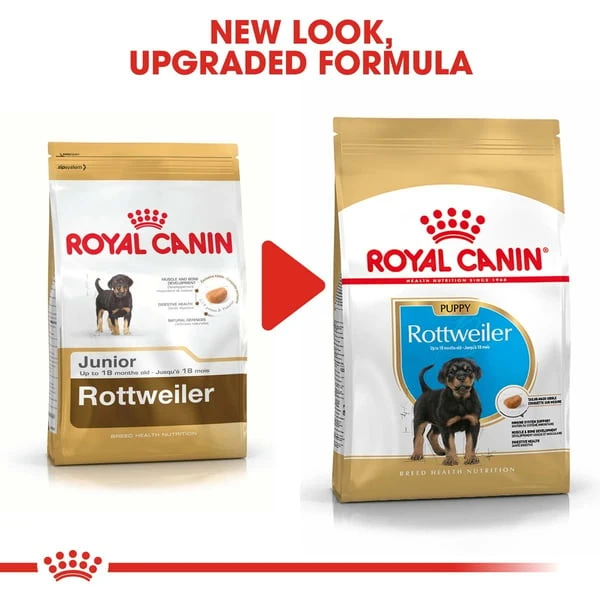 ROYAL CANIN Rottweiler Puppy ist für Rottweiler im Alter von bis zu 18 Monaten geeignet und wurde speziell auf die Ernährungsbedürfnisse dieser Hunderasse abgestimmt. Da sich das Immunsystem Ihres Welpen erst allmählich entwickeln, verfügt ROYAL CANIN Rottweiler Puppy über einen synergistischen Antioxidantienkomplex, der unter anderem Vitamin E enthält. Diese exklusive Rezeptur unterstützt den Aufbau der natürlichen Abwehrkräfte Ihres Welpen in dieser wichtigen Lebensphase. Der Rottweiler ist eine sportliche Rasse mit großer Begeisterung und hoher Aktivität. Daher ist es wichtig, dass die Nahrung Ihres Welpen die Gesundheit von Gelenken, Knochen und Muskeln unterstützt. Aus diesem Grund enthält ROYAL CANIN Rottweiler Puppy L-Carnitin, einen angepassten Proteingehalt sowie ausreichende Mengen an Kalzium und Phosphor. Weiterhin enthält ROYAL CANIN Rottweiler Puppy ein Nährstoffprofil mit hochwertigem Eiweiß und präbiotischen Fasern (FOS), um die Verdauung Ihres Welpen zu unterstützen. Das hochwertige Protein wurde speziell aufgrund seiner hohen Verdaulichkeit ausgewählt. Diese Rezeptur trägt auch zur Aufrechterhaltung eines gesunden Gleichgewichtes der Darmflora bei, was wiederum zu einer guten Kotqualität führt.
