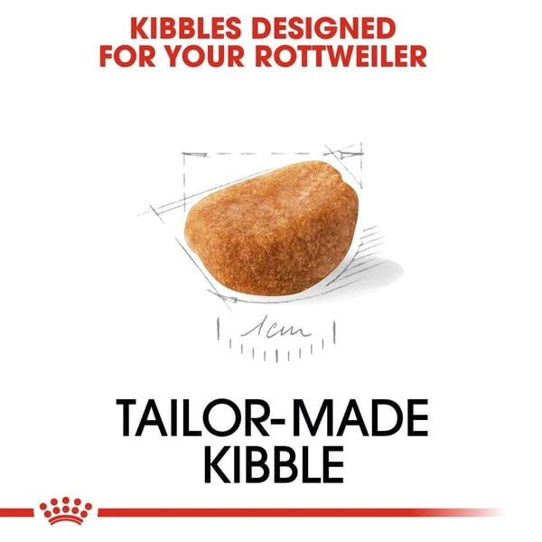 Die Kroketten von ROYAL CANIN Rottweiler Puppy sind speziell auf diese Rasse abgestimmt: Größe und Form der Trockenfutterkrokette sind speziell auf die Kieferform Ihres Welpen zugeschnitten, was ihm die Aufnahme und das Kauen erleichtert. Die Textur der Kroketten regt Ihren Hund zum gründlichen Kauen and und beugt so hastigem Schlingen vor.