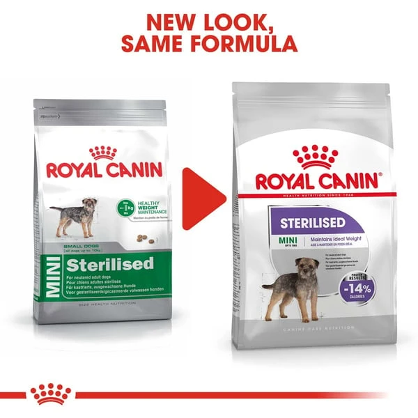 ROYAL CANIN® Sterilised Mini ist nachgewiesenermaßen ein erfolgreiches Futter zur Vermeidung einer Gewichtszunahme: Es beinhaltet 14% weniger Kalorien als herkömmliches Futter für ausgewachsene Hunde.