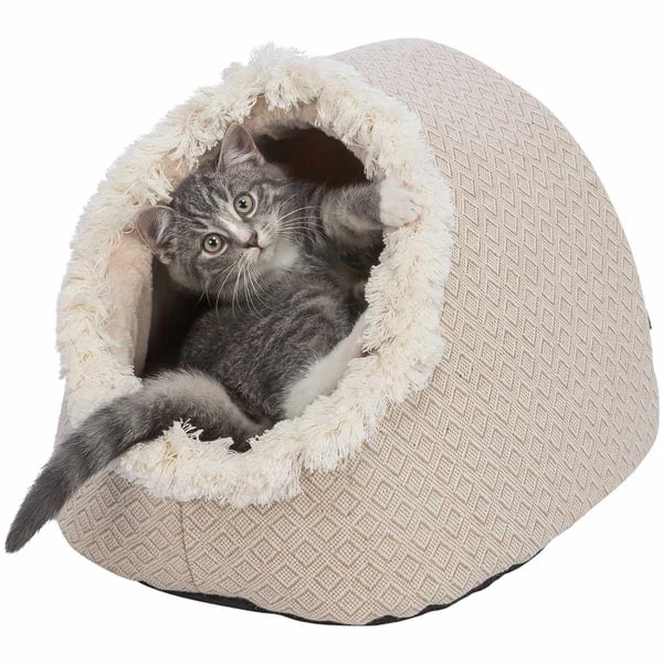 Die Höhle Boho ist ein gemütliches Versteck für Katzen und kleine Hunde. Das Wendekissen mit Polyestervlies-Füllung ist gesteppt und kann bei 40°C in der Maschine gewaschen werden. Der rutschfeste Boden sorgt für einen sicheren Stand und verhindert ein Verrutschen der Höhle. Mit der Höhle Boho haben deine tierischen Freunde eine gemütliche und sichere Rückzugsmöglichkeit.