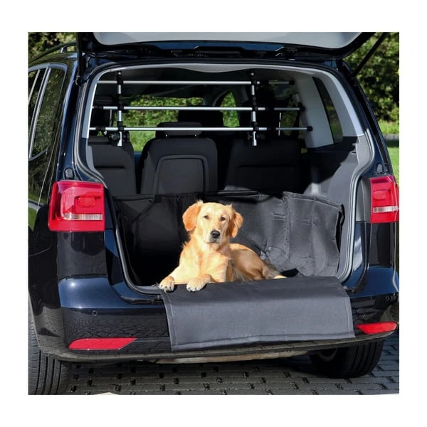 Diese Kofferraum-Schondecke von Trixie wurde entwickelt, um den Kofferraum bei Transport des Hundes vor Schmutz und Tierhaaren zu schützen. Die abnehmbare Schürze schützt Stoßstange vor Kratzspuren. Die Anti-Rutsch-Beschichtung bietet dem Hund mehr Halt und Sicherheit. Durch die hohen Seitenteile wird die Seitenverkleidung des Kofferraums geschützt. Durch die formbaren Metallstäbe lässt sich die Schondecke in jeden Kofferraum anpassen und der Ein- und Ausbau wird vereinfacht.