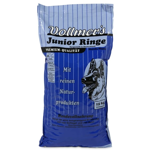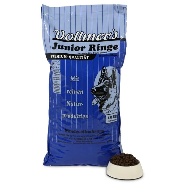 Du suchst ein schmackhaftes Trockenfutter, um deinen Hund zu begeistern? Vollmer’s Junior Ringe Trockenfutter überzeugt als qualitativ hochwertiges Futter. Hochwertiges Geflügel sorgt für ein einmaliges Geschmackserlebnis. Das Futter ist speziell auf die Bedürfnisse von jungen Hunden angepasst. Jungtiere haben einen anderen Bedarf an Energie als erwachsene Hunde, denn sie befinden sich noch in der Entwicklungsphase. Dieses Juniorfutter berücksichtigt insbesondere diese Anforderungen und enthält alle wichtigen Nährstoffe, die dein Liebling für einen gesunden Organismus benötigt.